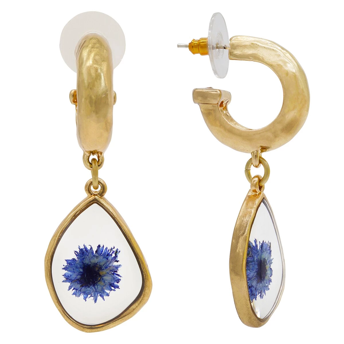 You can show off your floral flair with these fascinating Bella Uno worn gold-tone pressed blue flower earrings.