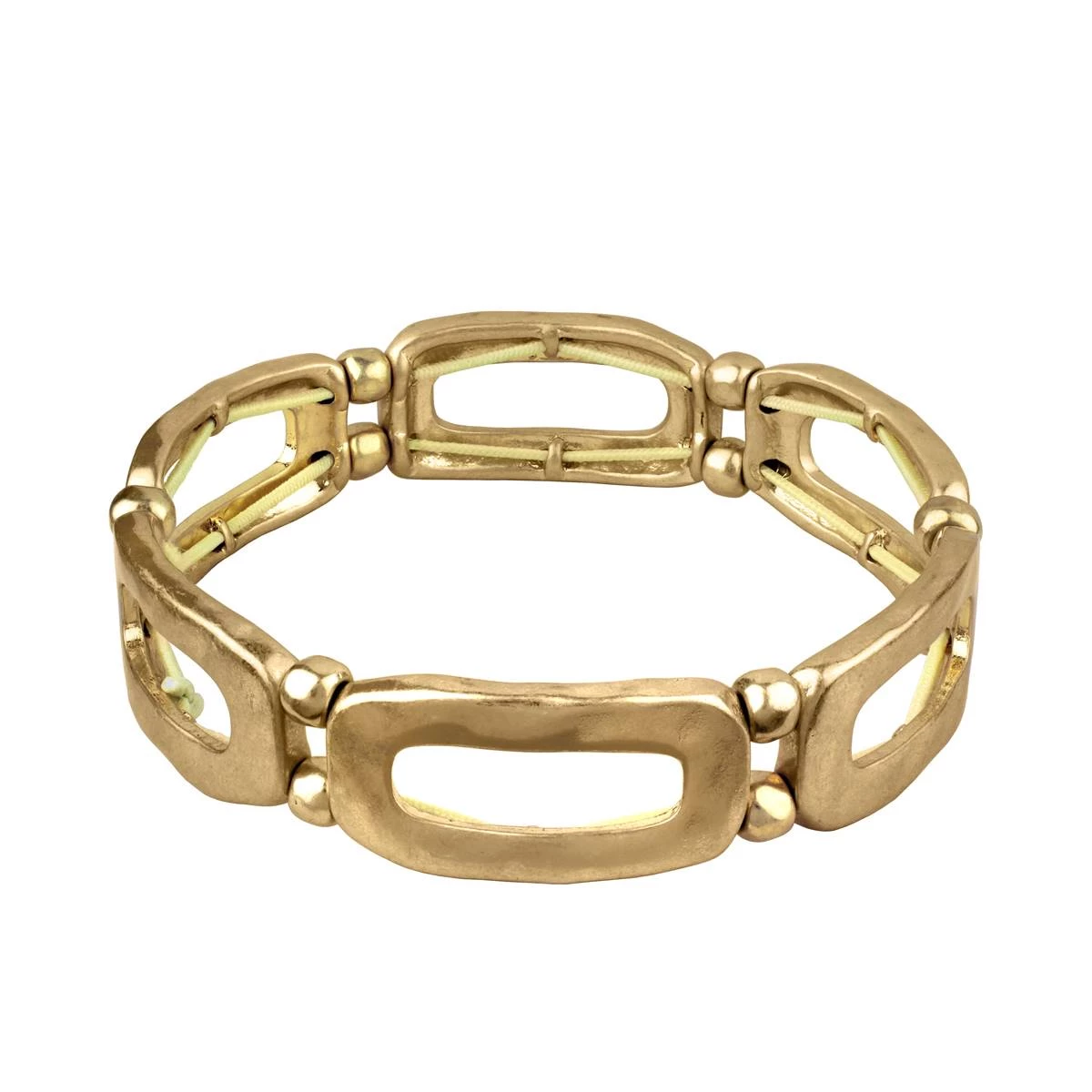 Show off your stylish spirit in this Bella Uno gold rectangle stretch bracelet.
