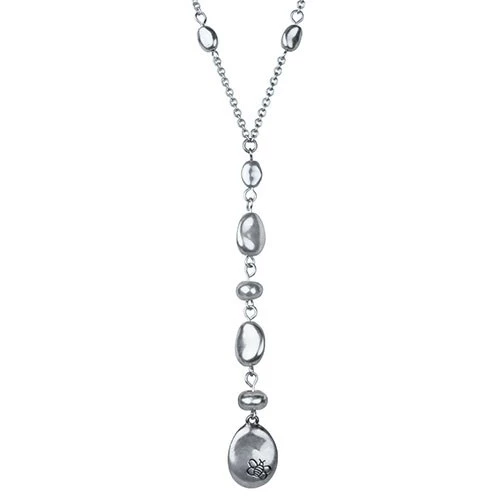 This Bella Uno stylish and versatile silver-tone 28 inch + 3 inch extension chain and stationary bead y-necklace is proudly designed in New York and is made of recycled metals.