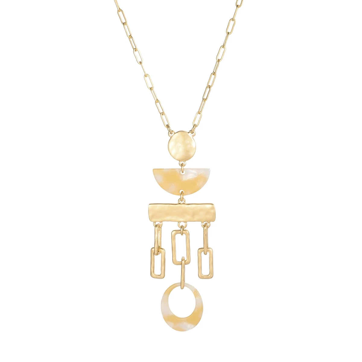Step out in eye-catching style with the Bella Uno worn gold-tone long chandelier necklace.