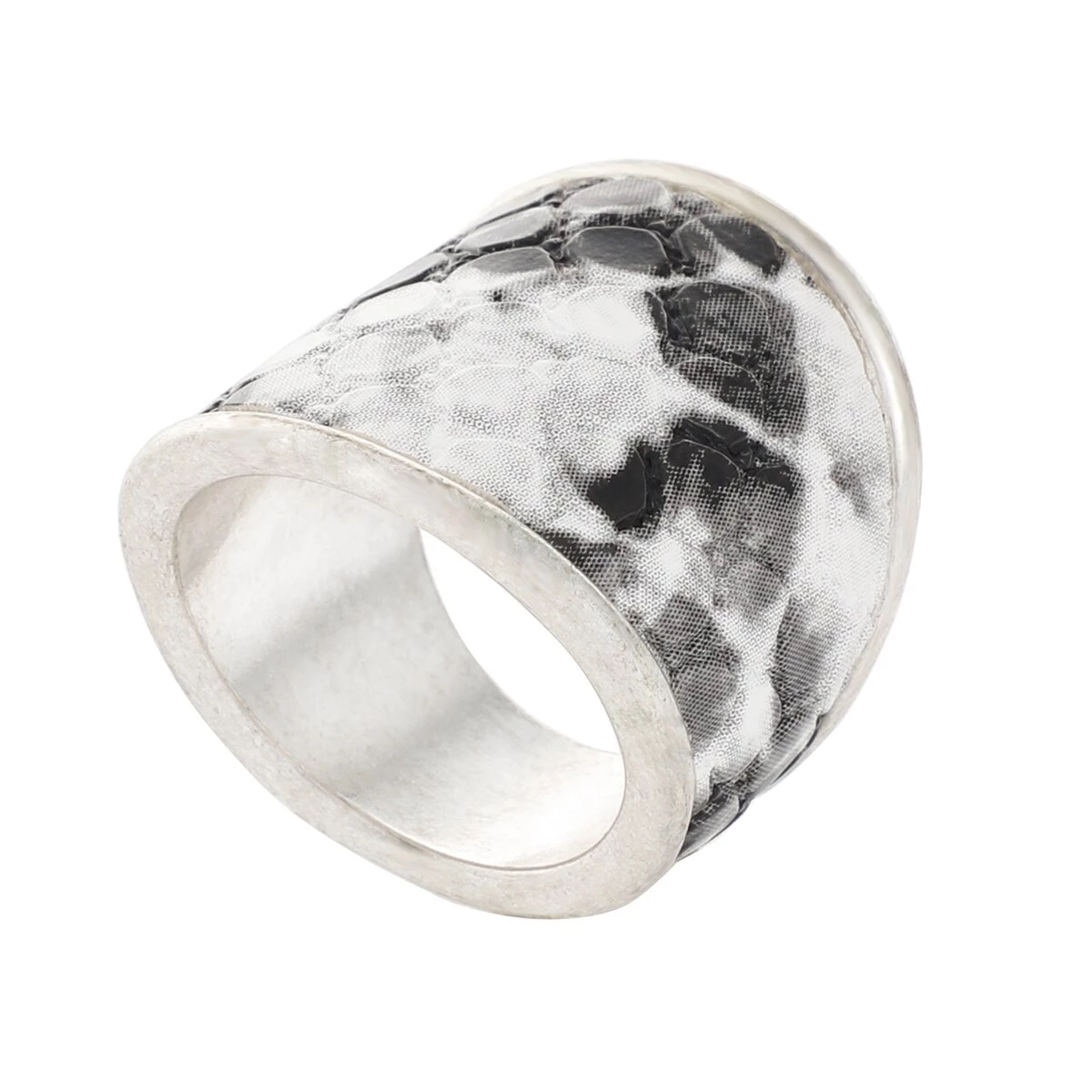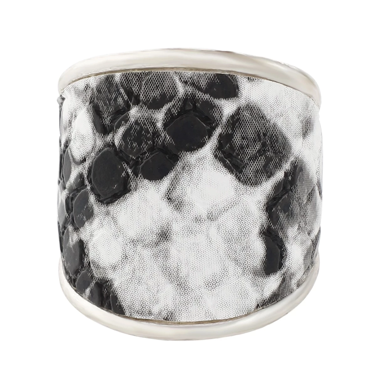 Do you want to make a statement? You will with the Bella Uno worn silver with faux leather ring.