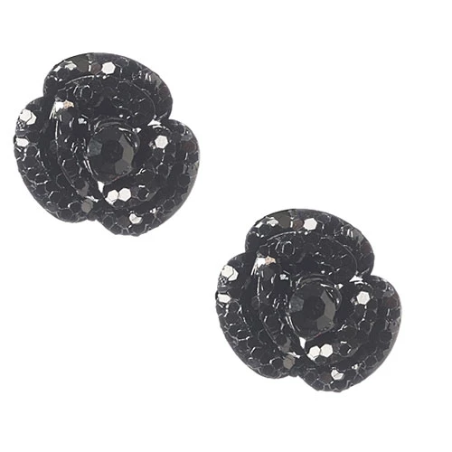 The Betsey Johnson Black colored glitter stud earrings feature a small black-colored crystal accent at the center.