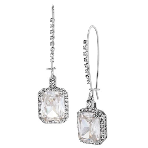 Betsey Johnson silver-tone ear wire shepherds hook earrings feature crystal accents, square-shaped cubic zirconia drop with crystal accents, and silver-tone details.
