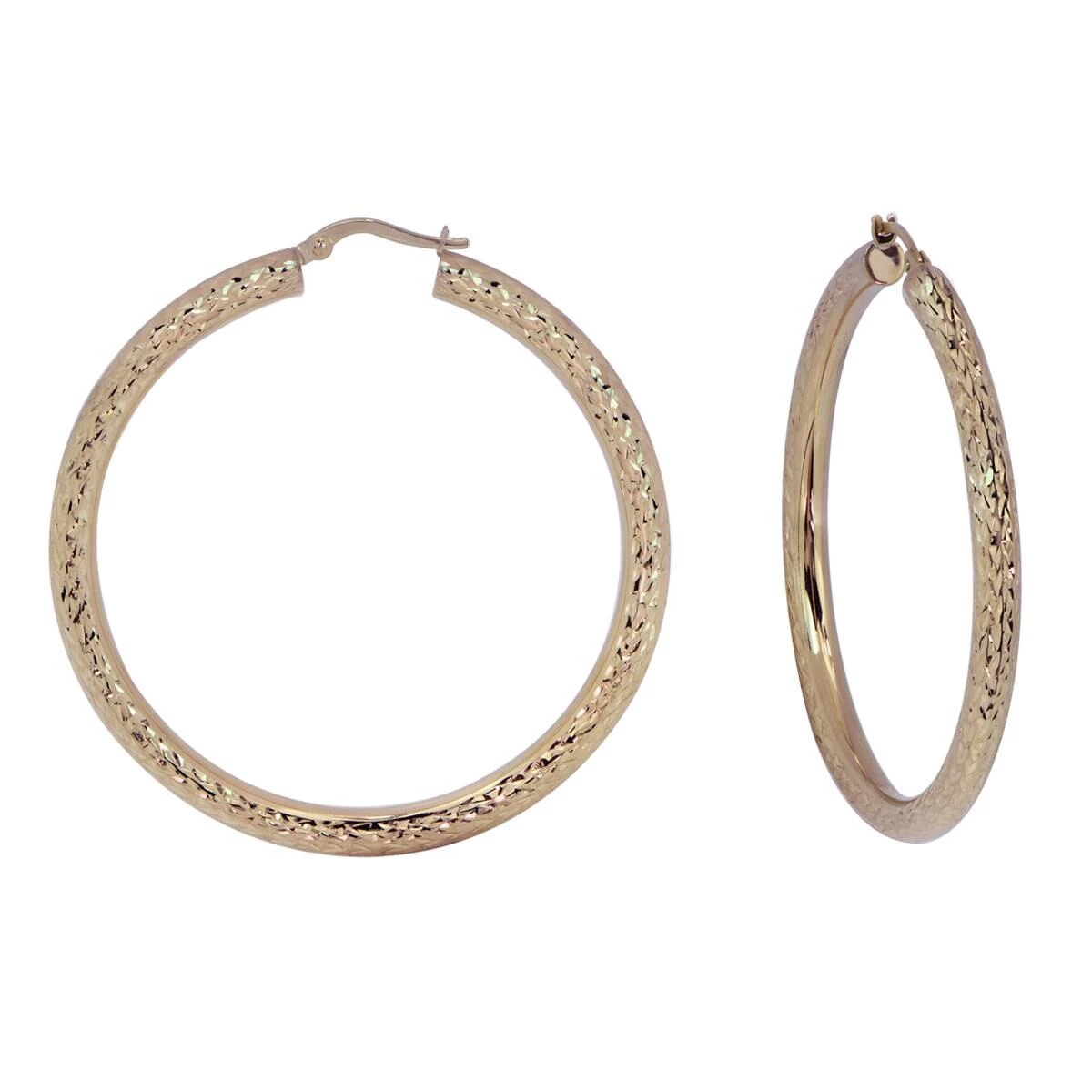 Attract other fashionistas in the Candela 14kt. gold full diamond cut hoop earrings.