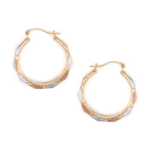 Candela 14kt. tri-color Aztec stone hoop earrings.