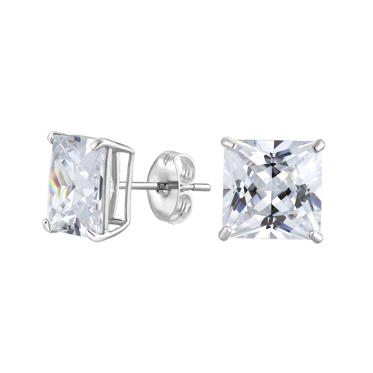 Feel infinitely beautiful in the fabulous design of these Candela 14kt. white gold square cubic zirconia stud earrings.