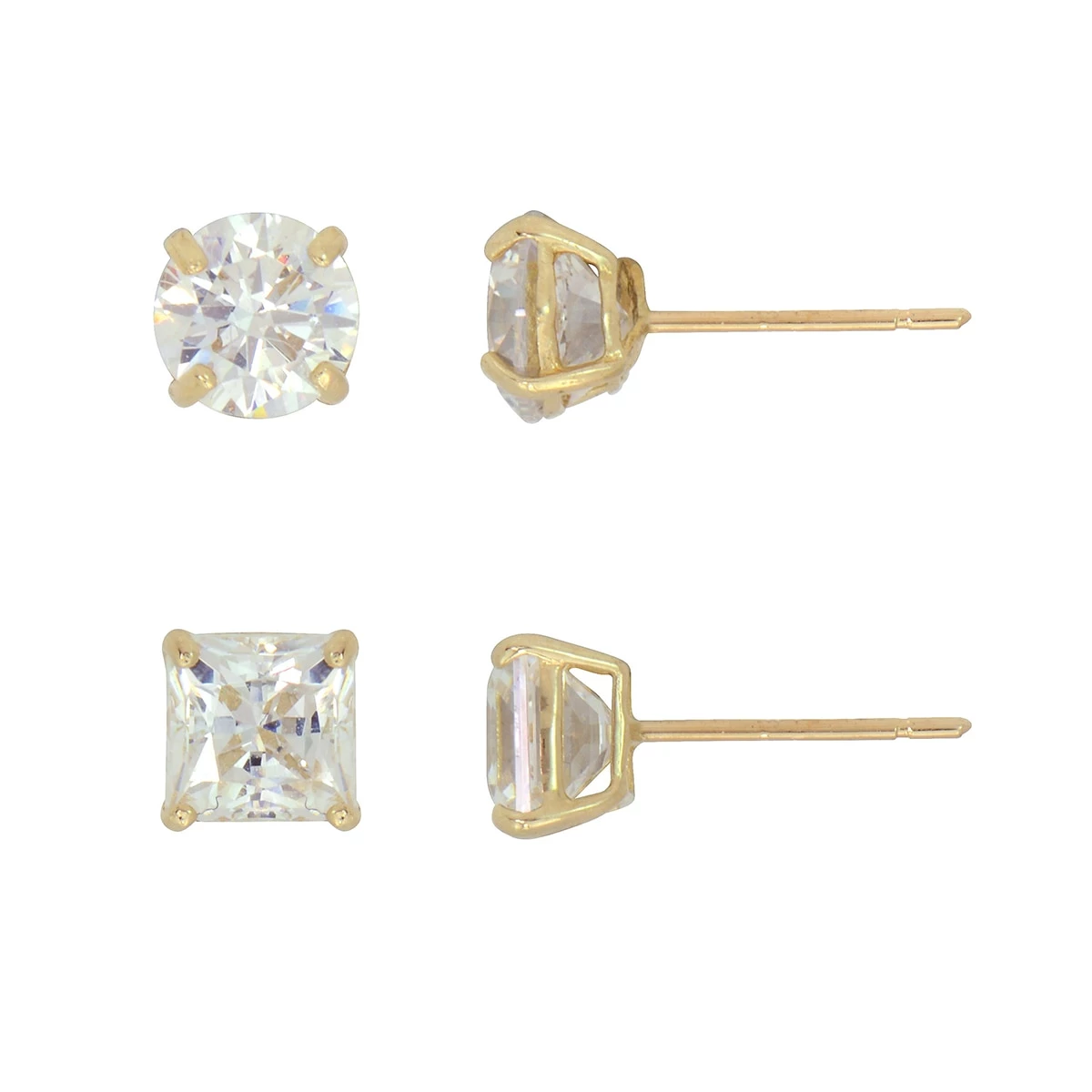 This Candela 14kt. stunning 6mm and 7mm 2 pair set cubic zirconia stud earrings offer a striking sophisticated presence.