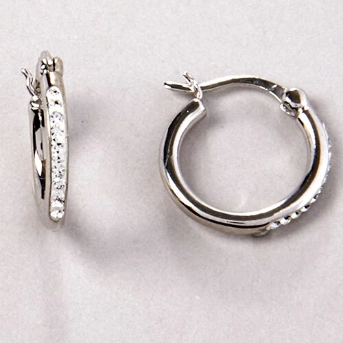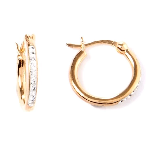 Candela 2-pair sterling silver and gold over silver round crystal hoop earrings.